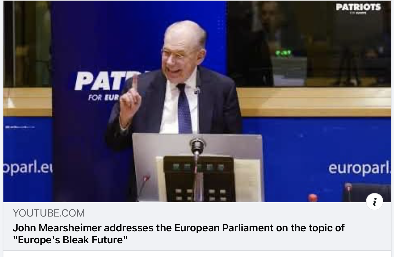 Professori John Mearsheimer puhui eilen (18.11.2025) Euroopan parlamentille aiheesta ”Euroopan synkkä tulevaisuus” Hänen johtopäätöksensä Ukrainan sodasta: ”Ukrainan sota, jonka väitän olevan länsimaiden, erityisesti Yhdysvaltojen provosoima, on Euroopan nykyisen turvattomuuden pääsyy.