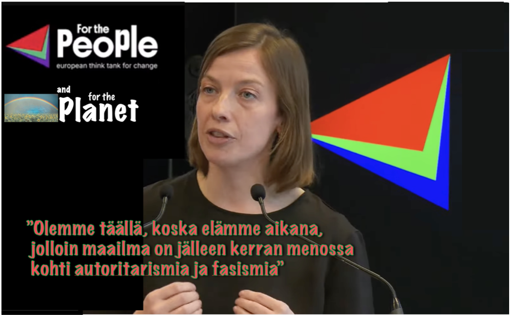 Europarlamentaarikkomme Li Andersson totesi uuden, eurooppalaisen “For the People” – ajatushautomon aloitustapahtumassa (1): ”Olemme täällä, koska elämme aikana, jolloin maailma on jälleen kerran menossa kohti autoritarismia ja fasismia. … nyt