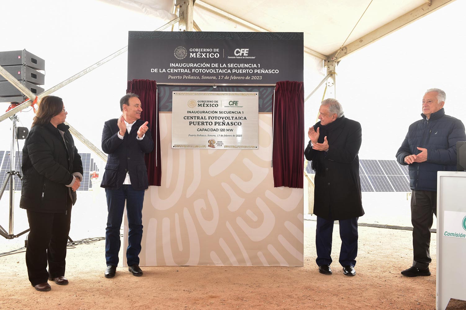 Maailman suurimpiin jatkossa lukeutuvan aurinkoenergian keskuksen lähes 1 200 megawatin tai 1.2 gigawatin kapasiteettiin myöhemmin yltävän Puerto Peñascon ensimmäinen vaihe avattiin presidentti Andrés Manuel López Obradorin johdolla 17.2. Hän korosti sitä, miten nyt avattu uusiutuvan aurinkoenergian aikakausi merkitsee Meksikon tekevän oman osansa saasteiden välttämiseksi ja ympäristöstä huolehtimiseksi. Samalla uusi tuotantolaitos takaa tulevaisuuden teknologioiden ja tehtaiden energiatarpeiden täyttymisen maan luoteiskolkassa. Presidentti kiitti sähköalan työntekijöitä ja ehdotti voimalalle nimeksi Rafael Galván edesmenneen sähkötyöläisten ammattiliiton (Sindicato Único de Trabajadores Electricistas de la República Mexicana – SUTERM) johtajan mukaan. CFE:n johtaja Manuel Bartlett Díaz puolestaan mainitsi 290 kilometrin sähköverkon laajennuksen, joka kytkee Baja Californian osavaltion jakeluverkon lopullisesti osaksi kansallista järjestelmää. Kuvernööri Durazo korosti, ettei autiomaan kennovoimala ole erillinen projekti, sillä se muodostaa osan uudesta alueellisen kehityksen ekosysteemin mallista, joka voidaan toteuttaa myös muissa osavaltioissa.