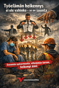 Tasa-arvo voi näyttää paperilla paremmalta, vaikka työelämän arki muuttuu monelle turvattomammaksi. Jos joku vielä uskoo, että työntekijöitä kurittamalla rakennetaan parempi työelämä, hän on pihalla kuin lumiukko – ja kevät on jo tulossa.