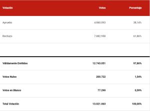 Chilen kansa hylkäsi vilkkaissa vaaleissa uuden luonnoksen perustuslaikseen. Vaikka aiemmin vuoden 2020 lokakuussa 78,3 prosenttia tuki uuden perustuslain luomista, joka oli vuoden 2019 mielenilmauksien keskeisin