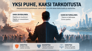 Suomalaisessa turvallisuuskeskustelussa on viime vuosina yleistynyt ilmiö nimeltä kaksoisviestintä. Esimerkiksi A-studion vakiovieraat maalailevat usein hyvinkin synkkiä uhkakuvia. Sitten he vaihtavat hattua ja sanovat, että mikään